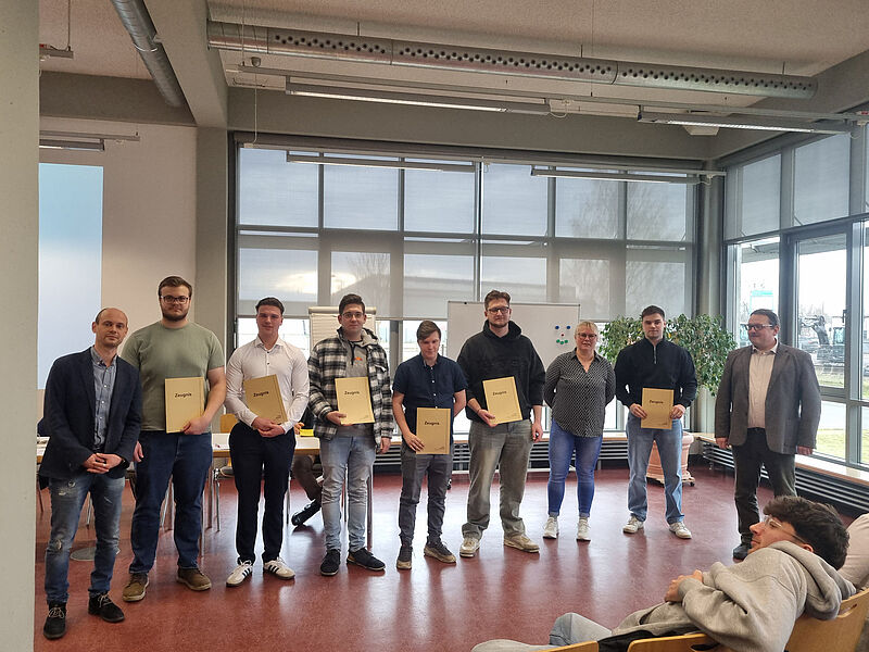 Am 19. Dezember 2025 war es so weit: Am Staatlichen Berufsschulzentrum „Hugo Mairich“ wurden im Bereich Metalltechnik die Zeugnisse der Abschlussklassen ausgegeben. Die Auszubildenden der Berufe Konstruktionsmechaniker, Werkzeugmechaniker, Zerspanungsmechaniker und Mechatroniker können damit nun offiziell einen Haken hinter ihre Berufsausbildung setzen.