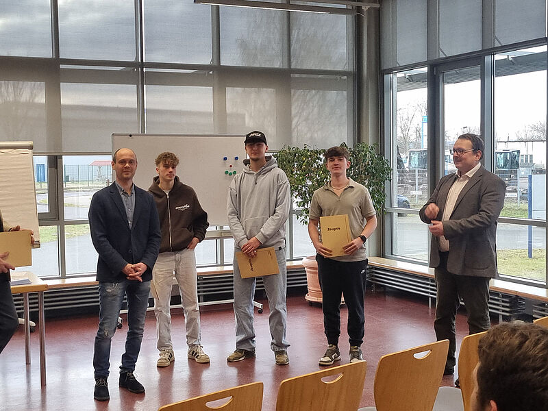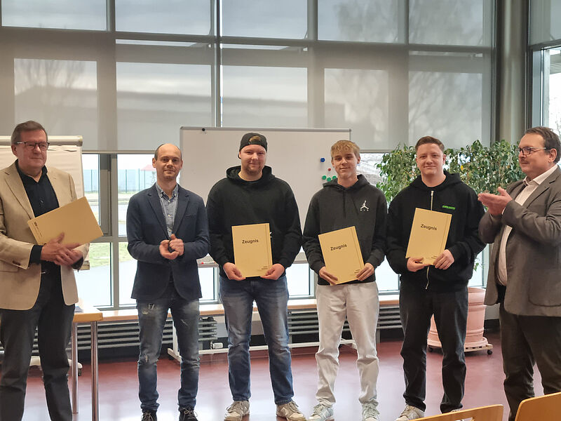 Besonders erwähnenswert ist an dieser Stelle, dass wir mit den Absolventen der Klasse MT22 die ersten Mechatroniker zu ihren Ergebnissen beglückwünschen dürfen, die aus berufsschulischer Sicht vollständig an unserer Schule unterrichtet wurden. Wir sind stolz darauf, auch diese Berufsgruppe mit Tatendrang in das Berufsleben starten zu sehen. Auch wenn die praktischen IHK-Abschlussprüfungen erst im Laufe des Januars 2026 stattfinden, sehnen sich die Ausbildungsbetriebe schon nach den jungen Fachkräften. Eine anspruchsvolle, zukunftsfähige aber auch abwechslungsreiche Tätigkeit erwartet die frischgebackenen Facharbeiter. Sei es in einer Tätigkeit in der Automatisierungstechnik, bei der Umsetzung der Industrie 4.0-Strategie oder bei der Instandhaltung und Fehlersuche in anspruchsvollen industriellen Produktionsanlagen.